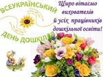 Дорогі наші колеги!!! Прийміть щирі вітання з професійним святом– Днем працівників дошкільної освіти. Зичимо усім здоров’я, невичерпних сил, втілення планів і творчих задумів, щастя, добра та натхнення, мирного неба і Перемоги!